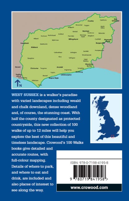 West Sussex is a walker’s paradise with varied landscapes including weald and chalk downland, dense woodland, and, of course, the stunning coast. With half the county designated as protected countryside, this new collection of 100 walks of up to 12 miles will help you explore the best of this beautiful and timeless landscape. The Crowood Walking Guides give detailed and accurate route descriptions of the 100 walks. Full-colour mapping is included which is sourced from the Ordnance Survey. Details of where to park and where to eat and drink are included and also places of interest to see along the way.