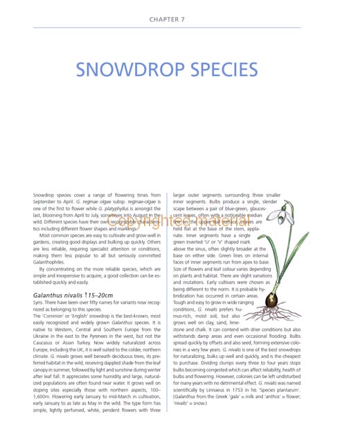 Snowdrops are one of the best loved, most popular and widely grown of all bulbous plants. This book celebrates their beauty and magical annual resurrection. This newly updated and expanded edition of this best-selling book introduces the twenty known species and has been updated to cover more than 2,400 named snowdrops. Discover the vast range of shapes, sizes and markings of these beautiful flowers. With information on cultivation and planting, detailed descriptions, informative drawings and interesting anecdotes – this will be an invaluable companion for all gardeners, and will inform and delight both the aspiring and seasoned galanthophile.
