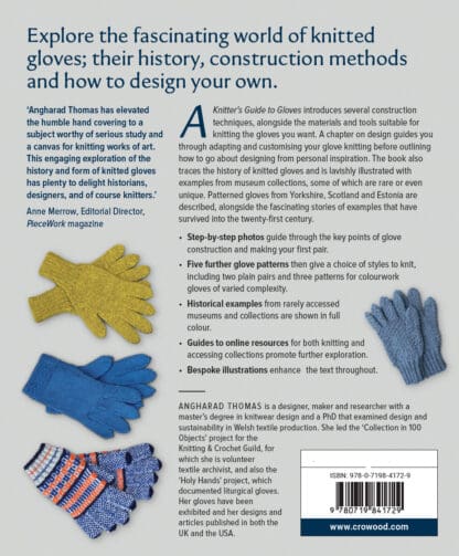 A Knitter’s Guide to Gloves introduces several construction techniques, alongside the possible materials and tools that are suitable for knitting the gloves you want. A chapter on design guides you through adapting and customising your glove knitting before outlining how to go about designing from personal inspiration. The book also traces the history of knitted gloves and is lavishly illustrated with examples from museum collections, some of which are rare or even unique. Patterned gloves from Yorkshire and Scotland are described, alongside the stories of examples that have survived into the twenty-first century. Selected gloves from Estonia are discussed, as well as some from UK collections including the Glovers Collection Trust and the Knitting and Crochet Guild. Includes step-by-step photos guide those new to knitting gloves through the key points of glove construction and making your first pair. Five further glove patterns then give a choice of styles to knit, from a plain pair through to colourworked gloves of varied complexity.