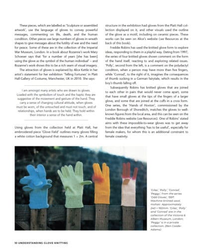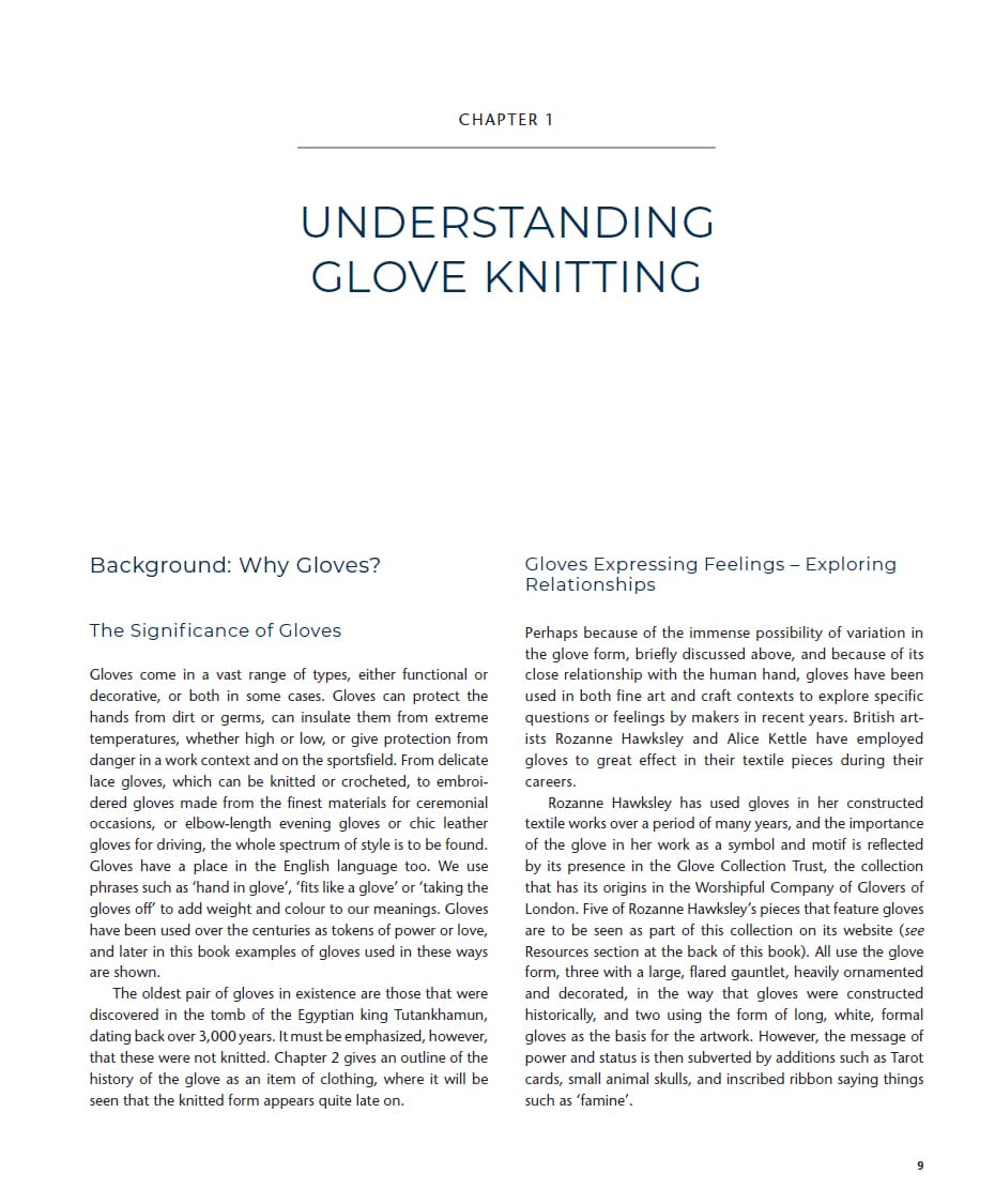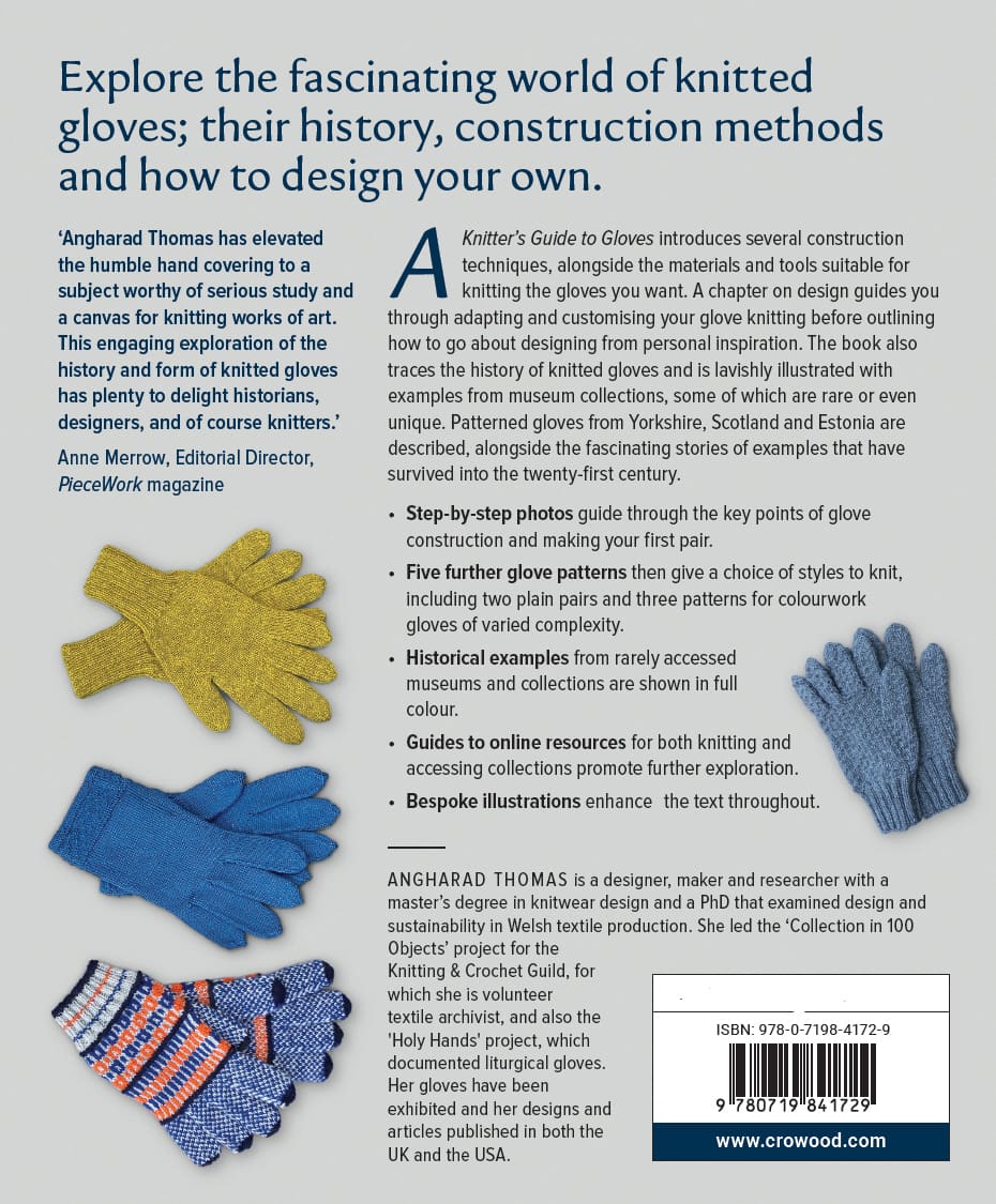 Angharad Thomas is a designer, maker and researcher. She has a master’s degree in knitwear design and a PhD which examined Welsh textile production, design and sustainability. Angharad has spent much of the last ten years researching, designing and knitting gloves, in tandem with her role as Textile Archivist for the collection of the Knitting & Crochet Guild. Her gloves have been exhibited and her designs and articles published in the consumer press in both the UK and the USA. Angharad also gives talks and workshops on glove knitting.
