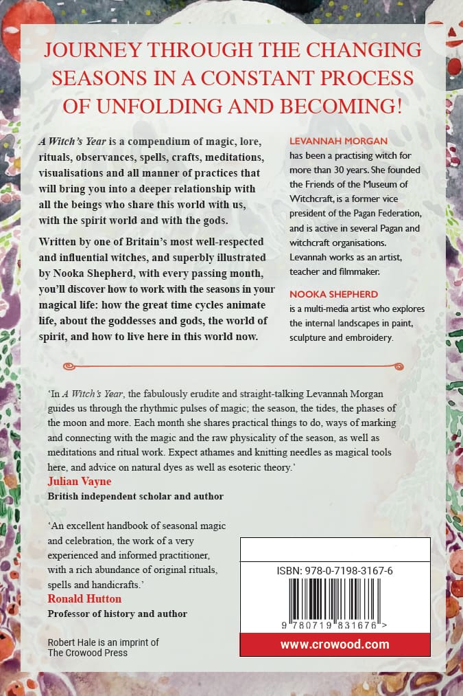 A Witch’s Year is a compendium of magic, lore, rituals, observances, spells, crafts, meditations, visualisations and all manner of practices that will bring you into a deeper relationship with all the beings who share this world with us, with the spirit world and with the gods. Written by one of Britain’s most well-respected and influential witches, and superbly illustrated by Nooka Shepherd, with every passing month, you will discover how this great tide works through your magical life: how the great time cycles animate life, about the goddesses and gods, the world of spirit, and how to live here in this world now. Praise for A Witch’s Year ‘An excellent handbook of seasonal magic and celebration, the work of a very experienced and informed practitioner, with a rich abundance of original rituals, spells and handicrafts.’ Ronald Hutton ~ Professor of history and author ‘In A Witch’s Year, the fabulously erudite and straight-talking Levannah Morgan guides us through the rhythmic pulses of magic; the season, the tides, the phases of the moon and more. Each month she shares practical things to do, ways of marking and connecting with the magic and the raw physicality of the season, as well as meditations and ritual work. Expect athames and knitting needles as magical tools here, and advice on natural dyes as well as esoteric theory.’ Julian Vayne ~ British independent scholar and author