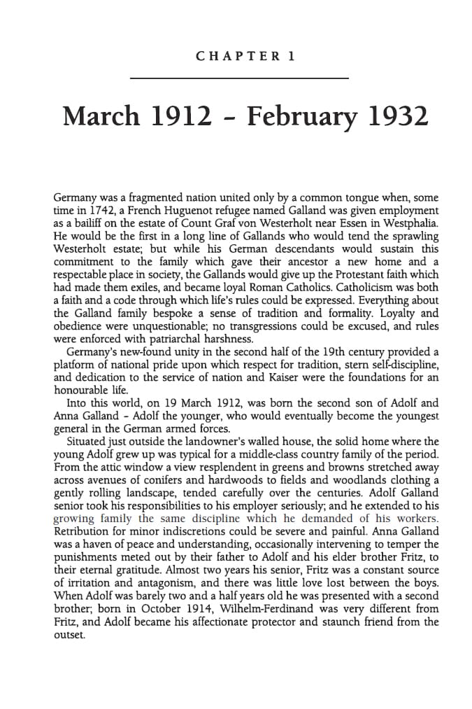 A remarkable story of integrity, skill and survival in a world divided by war The most famous German fighter pilot of World War II, Adolf Galland was respected by both comrades and former enemies alike. A highly decorated ‘ace’ with over 100 air-to-air victories in the West, he was a recipient of the Knight’s Cross with Oak Leaves, Swords, and Diamonds, which was awarded to only 27 men among the millions who served. After the war, he built friendships with the very Allied pilots he once fought and was admired as much for his integrity as for his prowess as a pilot and commander. In his final years, he worked closely with historian David Baker to produce this authorised biography, largely illustrated with photographs from his private albums. Offering a rare glimpse into both the air battles of World War II and the inner workings of the Luftwaffe, and now featuring new appendices that include the latest research into Galland’s aerial kills, this book stands as an essential record of one of history’s most remarkable fighter pilots.