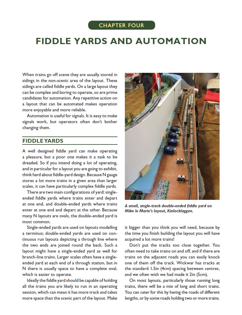 Many aspects of railway modelling are the same whatever scale you choose, but N Gauge has particular benefits: namely, that there is more space for scenery, longer trains and extensive fiddle yards. This leads to specific challenges in the design and layout to ensure a realistic-looking model. Assuming some familiarity with the basics of N Gauge, this book provides guidance and instruction to extend and develop modelling skills to produce a layout that is scenically impressive: planning baseboards, integrating scenery with the backscene, and keeping everything in harmony. With over 250 colour photographs, it includes constructing baseboards and scenery; how to make models of real buildings; using different systems for moving vehicles and controlling them; building, painting and finishing rolling stock from kits and, finally, what is needed to make a successful exhibition layout and how to perform demonstrations.