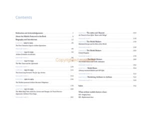 For most of the past century, beautiful models of airliners have been made to promote their airlines’ services in travel agents and their own shops. The models also illustrate the evolution of airliner design over these decades: the wood and fabric biplanes of the 1920s, the broad adoption of all-metal airliners in the 1930s, the first jet airliners of the 1950s, the first wide-body airliners of the 1970s and the pioneering small steps in supersonic air travel are all covered. The increasingly colourful exterior schemes adopted by the airlines, to ensure recognition by aspiring passengers, provide an interesting subtext. For model collectors, the airliner type, makers name, scale, approximate age and the materials used are detailed for each model illustrated. A short history of significant model-making companies is covered. With the onset of online bookings and the closure of airline offices and travel agents, the use of models is fast vanishing forever. The focus of this book is to preserve this fascinating era when models were a significant marketing tool, and to ensure that these models, at least in photographic form, survive as a record for future generations.