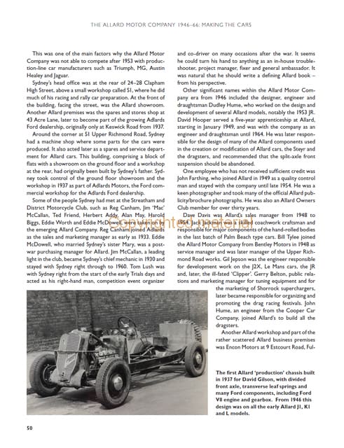 Alan Allard is the son of the marque's founder, Sydney Allard, and is also a significant motor sport and engineering figure in his own right - a pioneering, record-holding British dragster driver, national class rally driver, and the man behind the further development of supercharging. Today Alan leads the Allard Motor Company as it launches its new 'continuation' chassis built by Alan and his son, Lloyd. Younger son Gavin curates the Allard archives. Alan and his family are key supporters of the Allard Owners Club.
