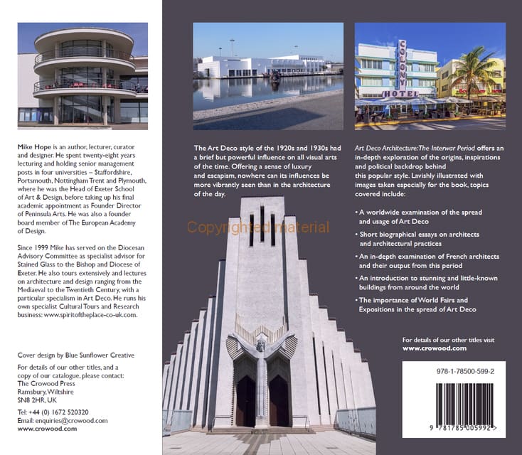 Art Deco burst upon the world for a brief but unforgettable existence during the 1920s and 1930s. It embraced new media, such as the cinema and radio, as well as new forms of transport and the associated buildings, and above all brought a sense of luxury, fun and escapism to the world during some of the hardest times. Art Deco Architecture – The Inter War Period examines the sources and origins of the style from before the First World War. It offers an in-depth exploration of the origins, inspirations and political backdrop behind this popular style. Lavishly illustrated with images taken especially for the book, topics covered include: a worldwide examination of the spread and usage of Art Deco; short biographical essays on architects and architectural practices; an in-depth examination of French architects and their output from this period; an introduction to stunning and little-known buildings from around the world and finally, the importance of World Fairs and Expositions in the spread of Art Deco.