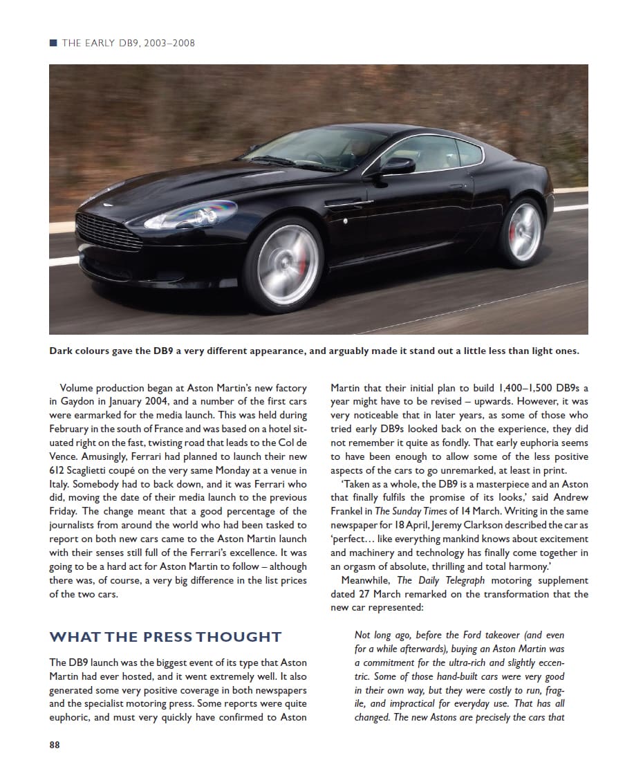 The importance of these two models to Aston Martin went far beyond publicity and the company image. For the Vanquish, a completely new and highly advanced body structure had been created, and this was further developed for the DB9 as the VH platform. Deliberately designed to provide flexibility and underpin further new models, this went on to become the basis of every new Aston Martin in the early years of the century. This book tells the complete story of the DB9 and Vanquish, the models that established a new and successful era for the company that made them.