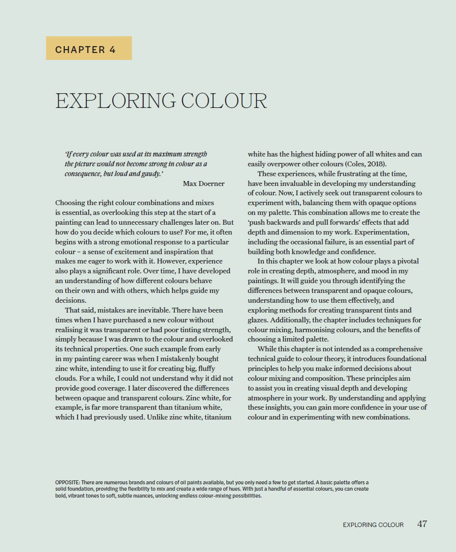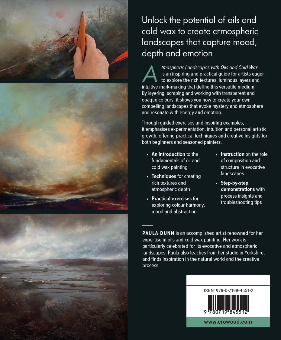 Atmospheric Landscapes with Oils and Cold Wax is an inspiring and practical guide for artists eager to explore the rich textures, luminous layers and intuitive mark-making that define this versatile medium. By layering, scraping and working with transparent and opaque colours, it shows you how to create your own compelling landscapes that evoke mystery and atmosphere and resonate with energy and emotion. Through guided exercises and inspiring examples, it emphasises experimentation, intuition and personal artistic growth, offering practical techniques and creative insights for both beginners and seasoned painters.