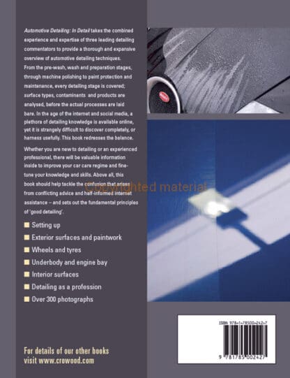 Automotive Detailing in Detail takes the combined experience and expertise of three leading detailing commentators to provide a thorough and expansive overview of automotive detailing techniques. From the pre-wash, wash and preparation stages, through machine polishing to paint protection and maintenance, every detailing stage is covered: surface types, contaminants and products are analysed, before the actual processes are laid bare. In the age of the internet and social media, a plethora of detailing knowledge is available online, yet it is strangely difficult to discover completely, or harness usefully. This book redresses the balance.