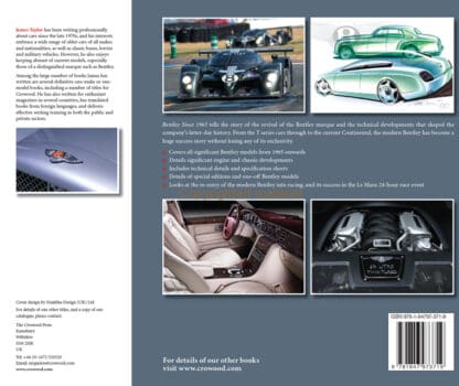 Bentley Since 1965 tells the story of the revival of the Bentley marque and the technical developments that shaped the company’s latter-day history. To illustrate the fall and rise of Bentley, this book goes right back to the origins of the 1960s T series cars through to the current Continental. The modern Bentley has become a huge success story without losing any of its exclusivity. This book covers all significant Bentley models from 1965 onwards; it details significant engine and chassis developments; includes technical details and specification sheets and riginal material on special editions and one-off Bentley models. Finally, it looks at the re-entry of the modern Bentley into racing, and its success in the Le Mans 24-hour race event.