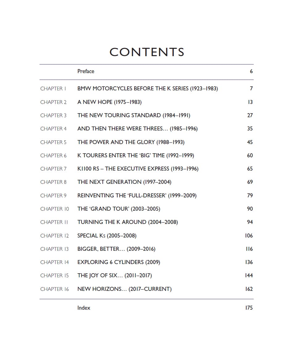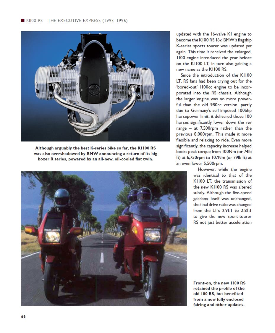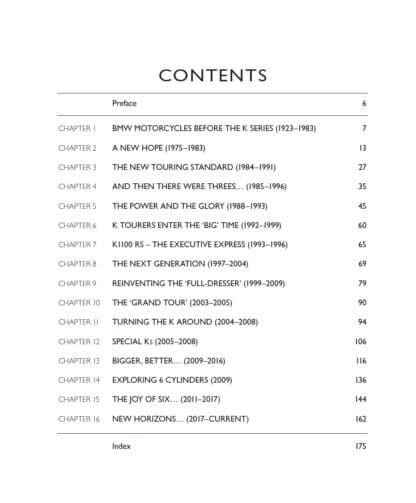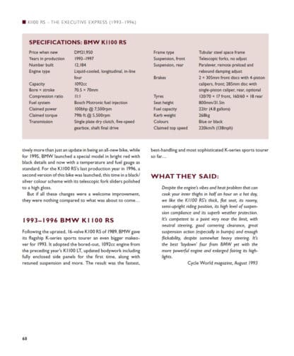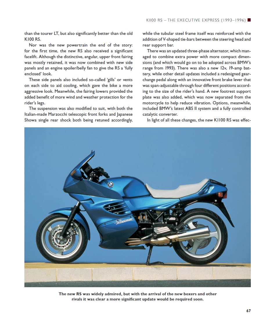While BMW motorcycles remain mostly associated with its R-series shaft-drive boxer twins, it’s the K-series liquid-cooled ‘multis’ that have been – and remain – the German firm’s most advanced, radical and downright wacky bikes of all. Launched in 1983 to propel BMW into a whole new era, the K-series has included some of the world’s most innovative and interesting motorcycles. From the original liquid-cooled, fuel-injected K100, to the radically aerodynamic K1 of the 1980s; the ultra-powerful K1200RS and space age K1200LT of the 1990s; and the ‘Duolever’ K1200S and 6-cylinder K1600 of the 2000s and beyond, BMW’s ‘Ks’ have always been special, but also so advanced and pioneering that they’ve helped shape the whole of modern motorcycling. BMW expert Phil West, author of BMW Airhead Twins and BMW GS, also published by Crowood, has again painstakingly researched their complete history, found pictures never published before and recounts the whole K-Series story in a comprehensive and engaging tale.
