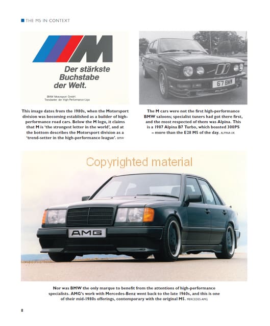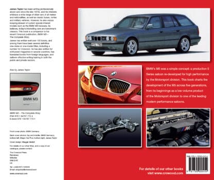 James Taylor has been writing professionally about cars since the late 1970s, and his interests embrace a wide range of older cars of all makes and nationalities, as well as classic buses, lorries and military vehicles. However, he also enjoys keeping abreast of current special-interest models such as the BMW M5 because, he believes, today's interesting cars are tomorrow's classics. This book is a companion to his recent Crowood publication, BMW M3 - The Complete Story.