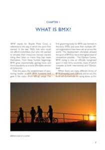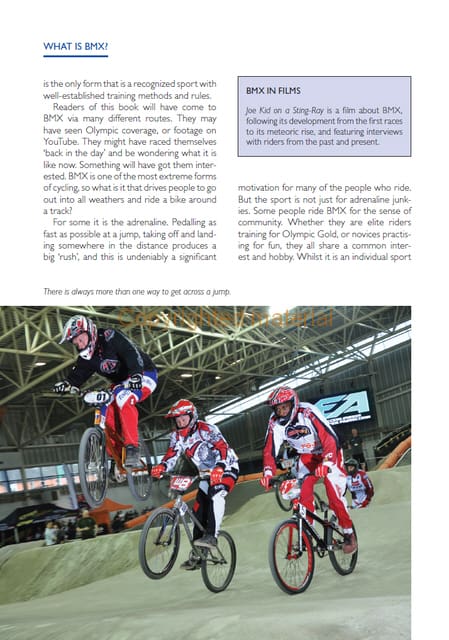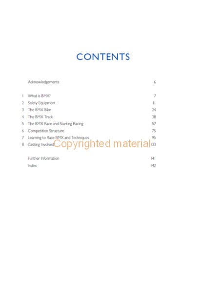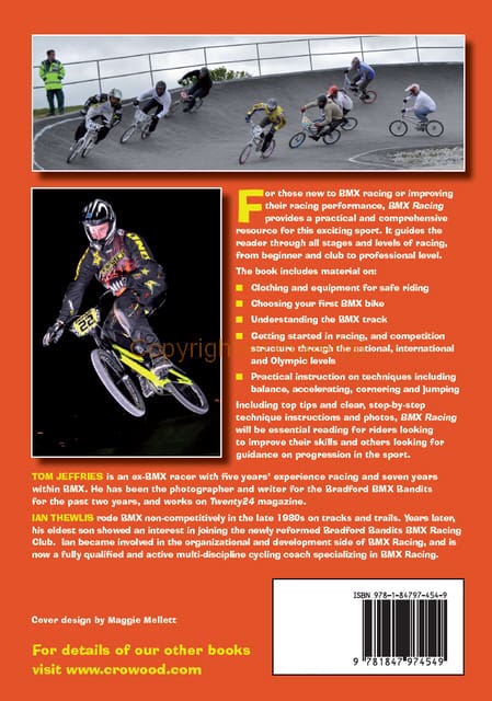 For those new to BMX racing or improving their racing performance, BMX Racing, provides a practical and comprehensive resource for this exciting sport. It guides the reader through all stages and levels of racing, from beginner and club to professional level. Topics covered include: clothing and equipment for safe riding; choosing your first BMX bike; understanding the BMX track; getting started in racing and competition structure through the national, international and Olympic levels. Finally, there is practical instruction on techniques including balance, accelerating, cornering and jumping.