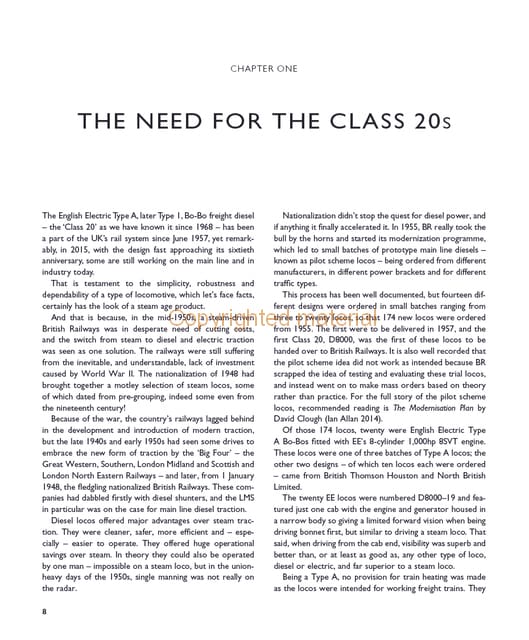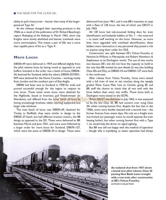 The first of the English Electric Type 1 design, what we now know as the Class 20s, appeared in June 1957. With their distinctive ‘chopper’ engine sound, these single-cabbed locomotives soon gained a reputation for rugged reliability brought about by their simplicity and use of tried and tested components. British Rail Class 20 Locomotives looks back at the operations of these fine locomotives since 1957, covering their varied workings and duties, regional use and railtour operations. The book also covers the technical aspects and specifications of the locomotives, including liveries and detailing.