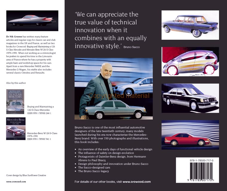When Bruno Sacco walked through the doors on his first day at Mercedes-Benz on 13 January 1958 it is highly unlikely that his Daimler-Benz colleagues could ever imagine that this nervous young man would not only revolutionize design but would change the way design and innovation connected with brand tradition forever. Bruno Sacco is one of the most influential automotive designers of the late twentieth century; many models launched during his era now characterize the Mercedes-Benz brand. When Nik Greene asked Bruno Sacco to assist with this book, he replied humbly ‘No-one designs a car alone, and more to the point, I never, for one minute, wanted to. From the moment I became Head of Design, I put down my pens and became a manager of minds.’ With over 330 photographs and illustrations, this book includes an overview of the early days of functional vehicle design; the influence of safety on design evolution; protagonists of Daimler-Benz design from Hermann Ahrens to Paul Bracq; design philosophy and innovation under Bruno Sacco; the Sacco-designed cars and, finally, the Bruno Sacco legacy.