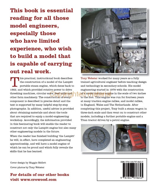 Tony Webster worked for many years as a fully trained agricultural engineer before teaching design and technology in secondary schools. His model engineering started in 1978 with the construction of a model traction engine in the scale of two inches to the foot. This engine was run for fourteen years at many traction engine rallies, and model rallies, in England, Wales and The Netherlands. After completing this project, Tony built a steam wagon in three-inch scale and then went on to construct other models, including a further portable engine and a Titan tractor driven by a petrol engine.