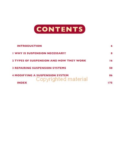 This book provides an easy-to-follow practical guide to the maintenance, repair and modification of the different types of suspension used in cars. With over 170 illustrations, including colour photographs and diagrams, this practical book explains what suspension is and why it is needed; it reviews the different types of suspension of available; it covers the key maintenance and repairs that an owner can undertake, and finally, describes modifications in detail with step-by-step photographs.