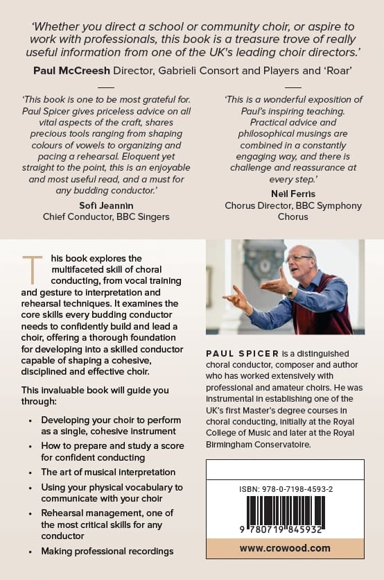 ‘This book is one to be most grateful for. Paul Spicer gives priceless advice on all vital aspects of the craft, shares precious tools ranging from shaping colours of vowels to organizing and pacing a rehearsal. Eloquent yet straight to the point, this is an enjoyable and most useful read, and a must for any budding conductor.’ ~ Sofi Jeannin, Chief Conductor, BBC Singers