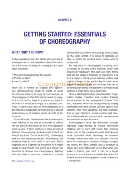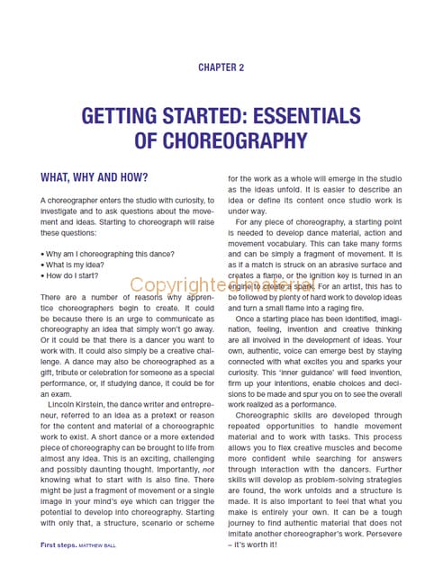 Choreography is the highly creative process of interpreting and coordinating movement, music and space in performance. By tracing different facets of development and exploring the essential artistic and practical skills of the choreographer, this book offers unique insights for apprentice dance makers. With key concepts and ideas expressed through an accessible writing style, the creative tasks and frameworks offered will develop new curiosity, understanding, skill and confidence. The chapters cover the key areas of engagement including what is a choreographer?; getting started; improvisation and ideas; context, stage geometry and atmosphere; movement as dance in time and space; solo, duet, trio and group choreography and finally, structure and the ‘choreographic eye’. This is an ideal companion for dancers and dance students wanting to express their ideas through choreography and develop their skills to effectively articulate them in performance.