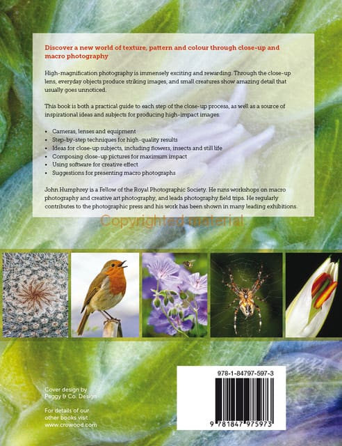 High magnification photography is immensely exciting and rewarding. Through the close-up lens, everyday objects produce striking images, and small creatures show amazing detail that usually goes unnoticed. This book is both a practical guide to each step of the close-up process, as well as a source of inspirational ideas and subjects for producing high-impact images. Topics covered include: cameras, lenses and equipment; step-by-step techniques for high quality results; ideas for close-up subjects, including flowers, insects and still life; composing close-up pictures for maximum impact; using software for creative effect and suggestions for presenting macro photographs.
