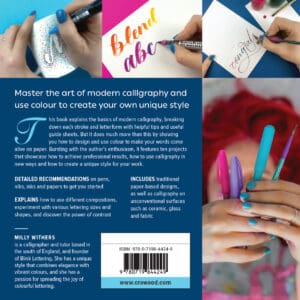 MILLY WITHERS is a calligrapher and tutor based in the south of England, and founder of Blink Lettering. She has a unique style that combines elegance with vibrant colours, and she has a passion for spreading the joy of colourful lettering.