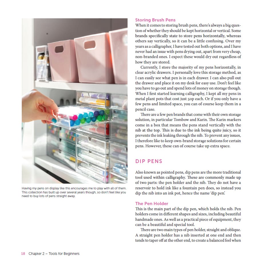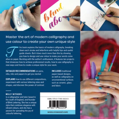 Master the art of modern calligraphy and use colour to create your own unique style. This book explains the basics of modern calligraphy, breaking down each stroke and letterform with helpful tips and useful guide sheets. But it does much more than this by showing you how to design and use colour to make your words come alive on paper. Bursting with the author’s enthusiasm, it features ten projects that showcase how to achieve professional results, how to use calligraphy in new ways and how to create a unique style for your work.