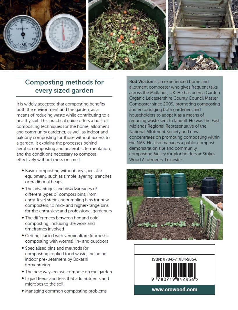Rod Weston is an experienced home and allotment composter who gives frequent talks across the Midlands, UK. He has been a Garden Organic Leicestershire County Council Master Composter since 2009, promoting composting and encouraging both gardeners and householders to adopt it as a means of reducing waste sent to landfill. He was the East Midlands Regional Representative of the National Allotment Society and now concentrates on promoting composting within the NAS. He also manages a public compost demonstration site and community composting facility for plot holders at Stokes Wood Allotments, Leicester.
