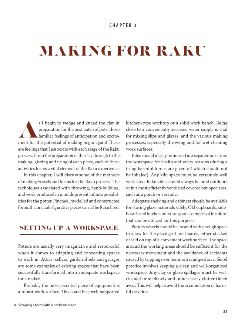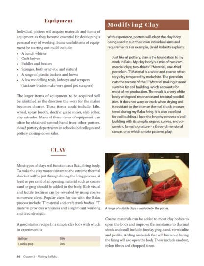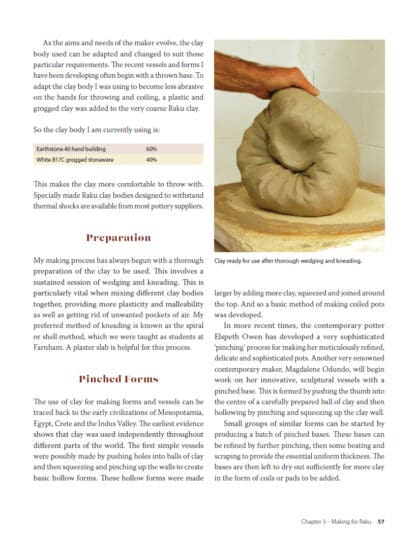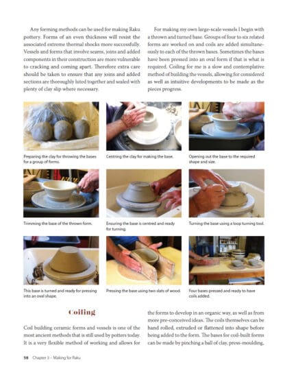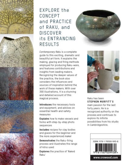 Contemporary Raku is a complete guide to this exciting, dramatic and beautiful art form. It explains the making, glazing and firing methods employed for producing Raku-ware, and features contributions and insights from leading makers. Recognizing the deeper values of the practice, the book also considers the influences and sources of inspiration behind the work of these makers. It introduces the necessary tools and equipment, and advises on essential health and safety measures. It explains how to make vessels and forms with step-by-step photo sequences. Recipes for clay bodies and glazes for the beginner and the more experienced maker are included. Details are given on the Raku-firing process and the range of kilns used. Finally, it explores the practice of ‘Naked Raku’. With over 300 illustrations, it is a stunning and detailed account to this magical process.