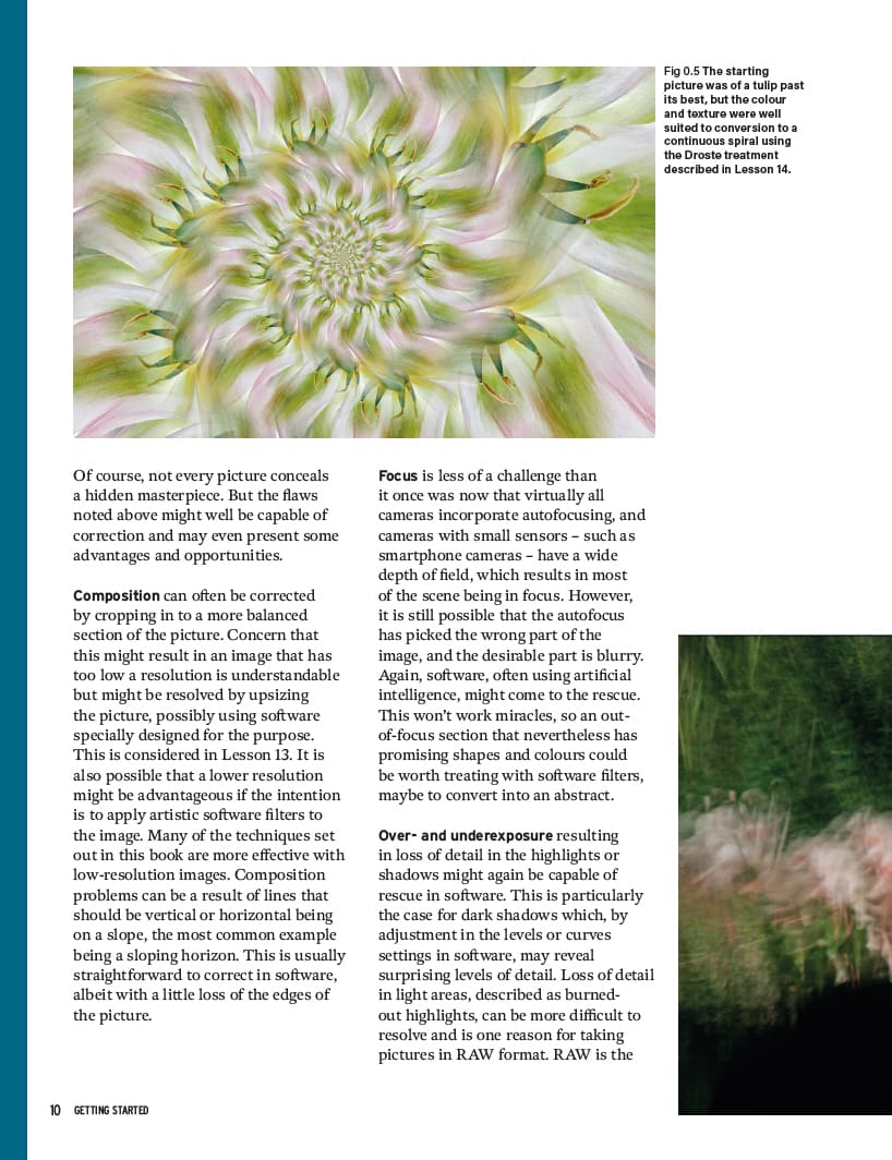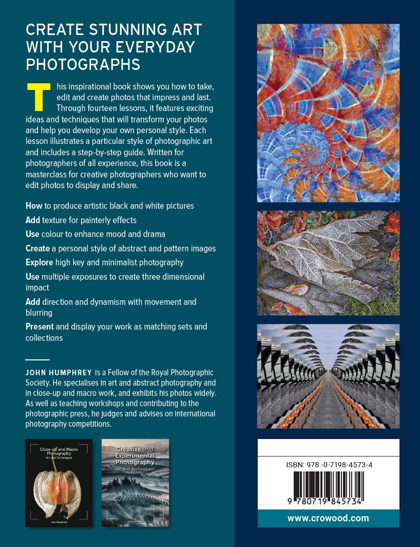 JOHN HUMPHREY is a Fellow of the Royal Photographic Society. He specialises in art and abstract photography and in close-up and macro work, and exhibits his photos widely. As well as teaching workshops and contributing to the photographic press, he judges and advises on international photography competitions.