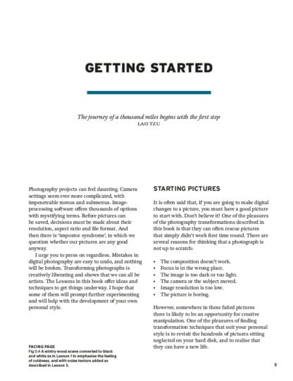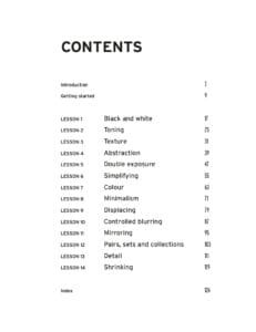 This inspirational book shows you how to take, edit and create photos that impress and last. Through fourteen lessons, it features exciting ideas and techniques that will transform your photos and help you develop your own personal style. Each lesson illustrates a particular style of photographic art and includes a step-by-step guide. Written for photographers of all experience, this book is a masterclass for creative photographers who want to edit photos to display and share.