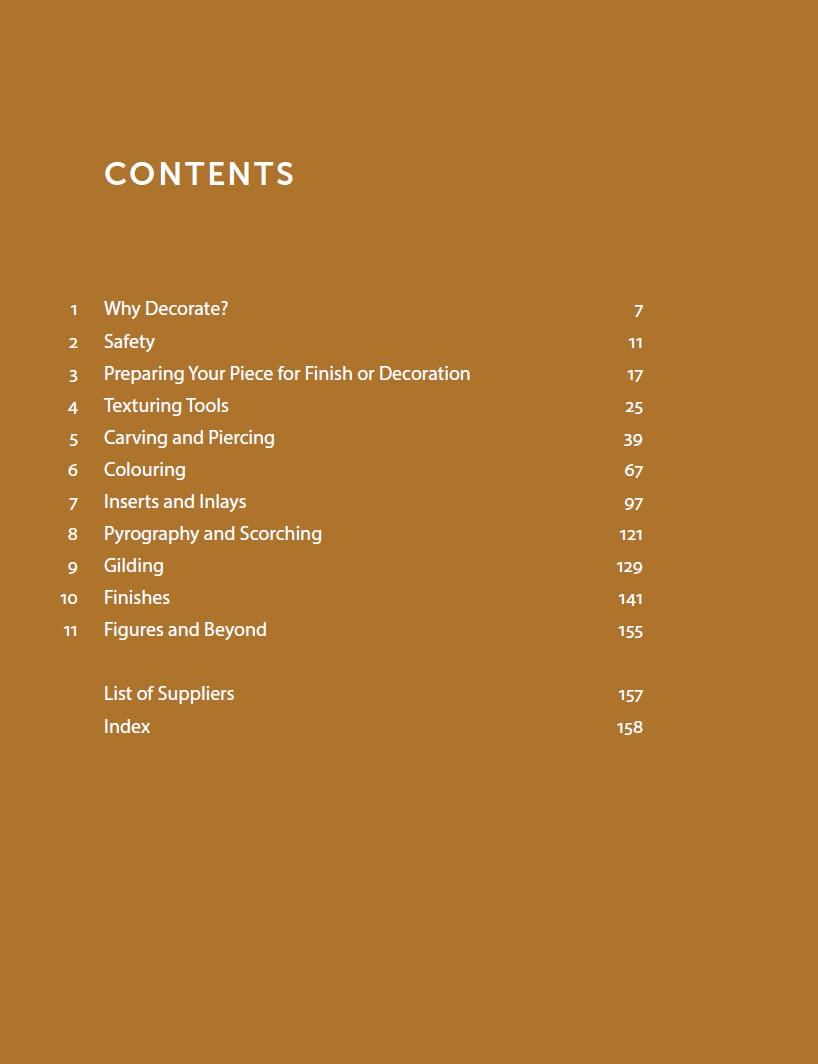 When most people first take up woodturning as a hobby, they are proud to produce bowls, plates and spindle-work. However, there will often come a time when this can become repetitive as, although some work stands out because of shape, grain pattern or because of the turner’s skill, there are many pieces that simply look uniform. There is one way to easily lift these works out of the ordinary, and that is by adding decoration. Decorative Woodturning will start you on this creative journey, describing how to undertake the most common types of decoration, helping build confidence and inspiring you to experiment with different techniques.