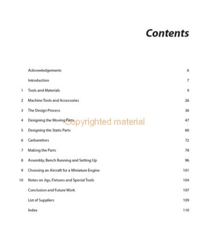 Designing and building a miniature aero-engine is an exciting and rewarding task. Whether a professional engineer or an amateur looking to build an engine to fly your model aeroplane, this book will safely guide you through all the stages of designing and constructing an aero-engine in your workshop at home. With practical advice and details diagrams throughout, the book includes: machine tools, materials and accessories required; designing the engine, including a focus on proportion, valve timing and engine balancing; the manufacture of carburettors, assembly and setting up and, finally, choosing an aircraft for a home-designed miniature engine.