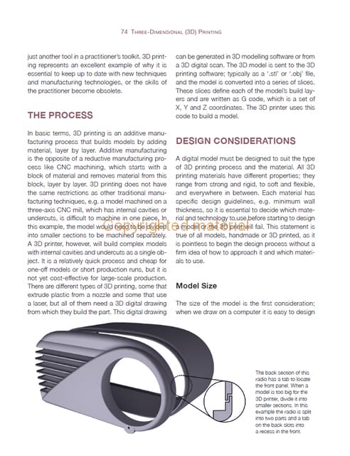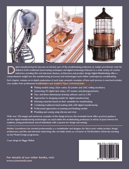 Digital manufacturing has become an intrinsic part of the modelmaking profession, so today’s practitioner must be skilled in both traditional hand-making techniques and digital technology. Relevant to a wide variety of creative industries, including film and television, theatre, architecture and product design, Digital Modelmaking offers a comprehensive insight into the manufacturing processes and technologies used within contemporary modelmaking. Each chapter contains an in-depth explanation of each topic, presents examples of how each process is used and includes case studies from professional modelmakers and students. Topics covered include: making models using a laser cutter, 3D printer and CNC milling machinery; generating 3D digital data using a 3D scanner and photogrammetry; two-and three- dimensional drawing software such as CAD; designing models for digital manufacturing; selecting materials based on their suitability for modelmaking; combining traditional hand-making skills with digital manufacturing; painting and finishing models, and finally, moulding and casting using silicone and resin. This invaluable book will be of great interest for students, young professionals and everyone with a passion for design and making.