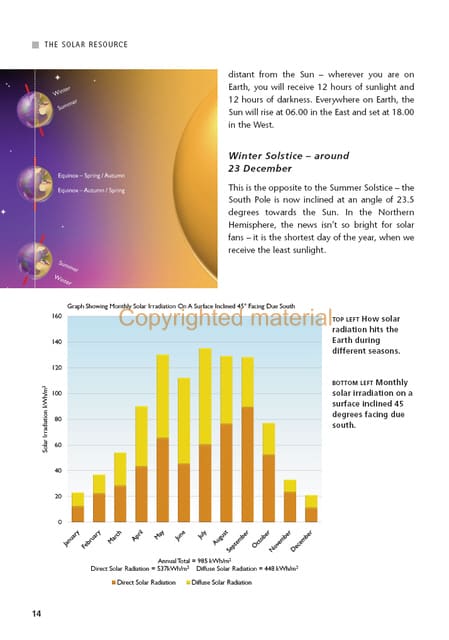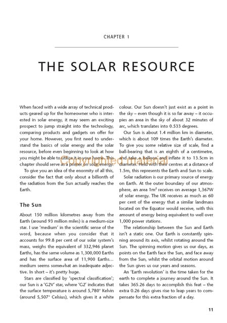 Domestic Solar Energy is brimming with advice and information that will be of value to all those who are interested in making the optimum use of solar energy in the home. The author considers the impact of global warming and the international energy crisis before explaining how the home owner can evaluate the energy performance of his, or her, house and make better use of natural lighting. All aspects are covered of the installation of photovoltaic cells to a residential property using solar power to produce domestic electricity and to heat water. The costs are calculated and the benefits of installing a solar energy system are assessed.