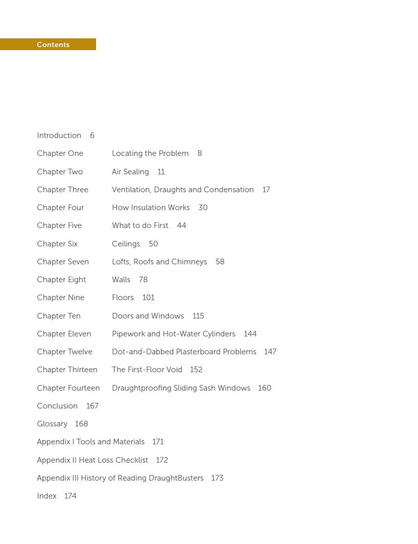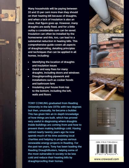 Many households will be paying 10–15% more than they should on their heating bill because of draughts, and when a lack of insulation is also an issue, that figure goes up. However, many draughts are easily fixed, and for a little outlay a considerable sum can be saved. Insulation can often be installed by the homeowner and lead to a substantial reduction in heating bills. This comprehensive guide covers all aspects of draughtproofing and insulation, with principles and techniques that can be applied in all homes.