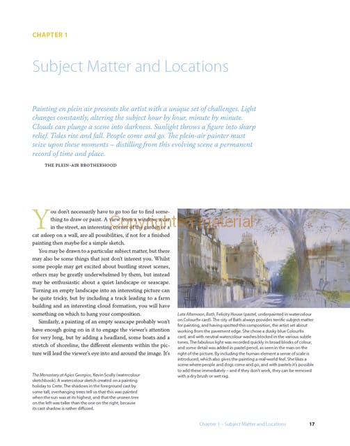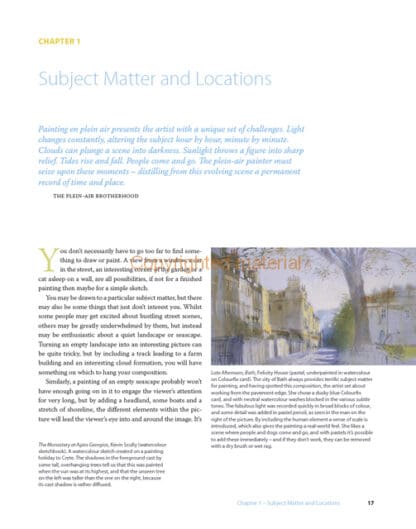 Working en plein-air is a French term that means literally ‘in the open air’ and, although artists have been doing just that for centuries, the concept is experiencing a resurgence today. Sketchers and painters alike are leaving their studios and heading out into the open air. This book encourages you to join them. Full of in-depth advice and practical instruction, it explains how to make the most of painting outside and how to capture the very essence of a scene with a far greater authenticity than can be achieved when working from a second-hand image. Covers an array of mediums including pencils, pastels, pens, watercolours, oils and acrylics.