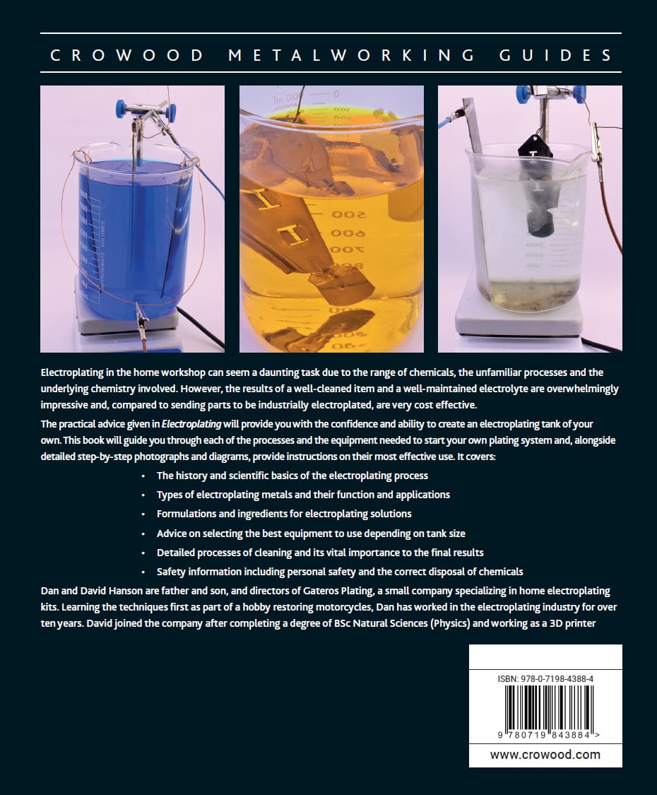Dan and David Hanson are father and son, and directors of Gateros Plating, a small company specializing in home electroplating kits. Learning the techniques first as part of a hobby restoring motorcycles, Dan has worked in the electroplating industry for over ten years. David joined the company after completing a degree of BSc Natural Sciences (Physics) and working as a 3D printer engineer. This is their first book.