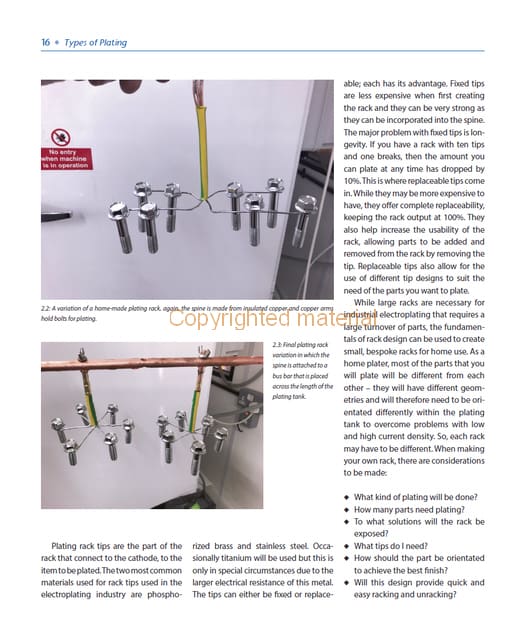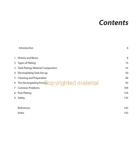 Electroplating in the home workshop can seem a daunting task due to the range of chemicals, the unfamiliar processes and the underlying chemistry involved. However, the results of a well-cleaned item and a well-maintained electrolyte are overwhelmingly impressive and, compared to sending parts to be industrially electroplated, are very cost effective. The practical advice given in Electroplating will provide you with the confidence and ability to create an electroplating tank of your own. This book will guide you through each of the processes and the equipment needed to start your own plating system and, alongside detailed step-by-step photographs and diagrams, provide instructions on their most effective use. It covers: the history and scientific basics of the electroplating process; types of electroplating metals and their function and applications; formulations and ingredients for electroplating solutions; advice on selecting the best equipment to use depending on tank size; detailed processes of cleaning and its vital importance to the final results and finally, safety information including personal safety and the correct disposal of chemicals.