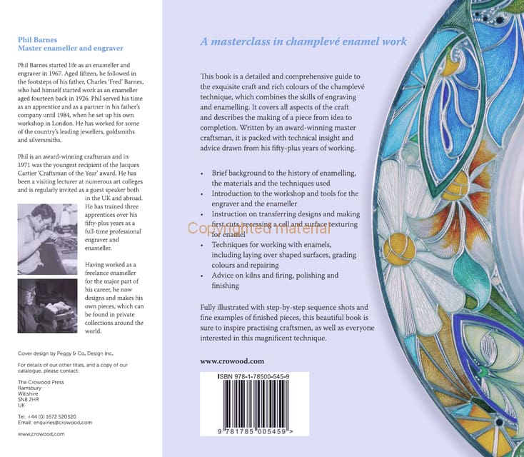 The exquisite colours of enamelling have been the choice of kings for centuries. This book explains the rich traditions of the magnificent technique of champleve, which combines the skills of engraving and enamelling. Champleve is a technique of enamelling requiring the creation of a cell into which enamel is then applied. Celebrating fifty years of working as a master craftsman, Phil Barnes gives a unique insight into all aspects of the process. He explains the techniques of engraving in preparation for enamelling, and then looks at enamels and how to work with them to create a piece, through to the final polishing and finishing.