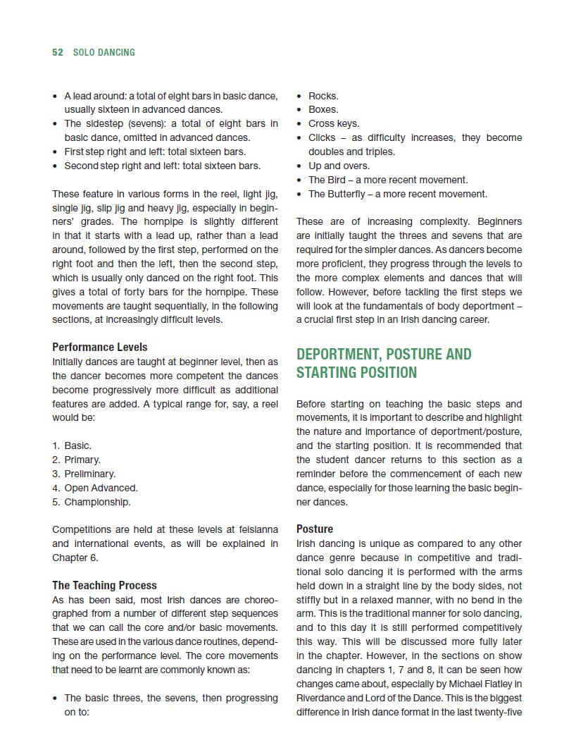 The Irish Dance genre is an essential part of the heritage and culture of Ireland. From its early roots in Celtic history, to the global growth inspired by shows such as Riverdance, to the modern- day competitive championships and Feisanna, it continues to be a vibrant and evolving dance form. The Essential Guide to Irish Dancing delves into the history and culture behind the world of Irish Dance, offering technical instruction from beginner-level to advanced, including how to prepare exciting set dances and choreograph innovative sequences. Topics covered include: Irish dance music; the fundamentals of solo dancing; traditional dance movements and set dances; Céilí dancing; competitions and careers; choreography, and finally, physical fitness and mental health.