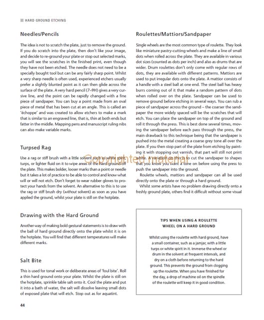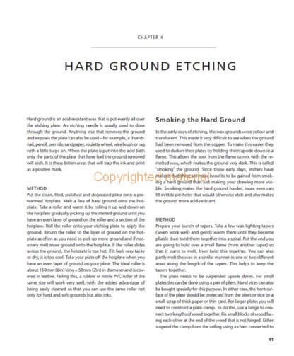 There is a generosity of technical tips and information throughout the book, which combined with stage by stage illustrations of different techniques, studio layout and range of different styles of print works, makes Smith's book a good reference for any printmaker.