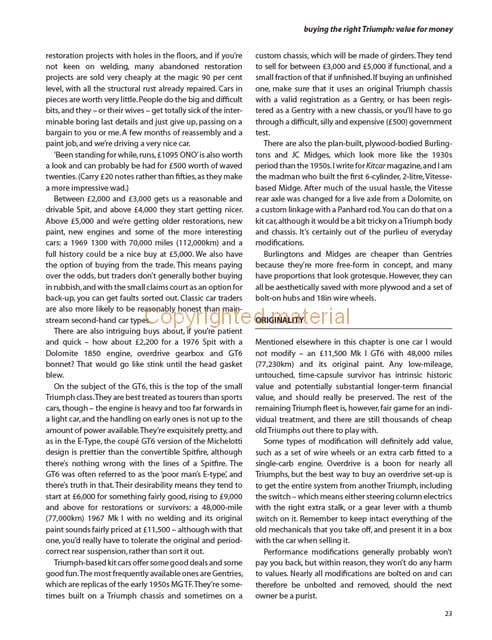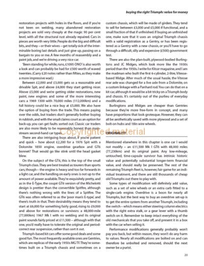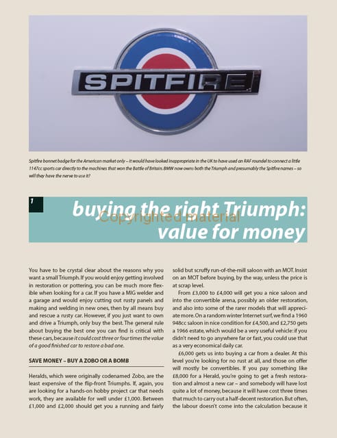 Iain Ayre has owned several Heralds, Vitesses, Spitfires and a GT6 - requiring much hands-on spannering to keep them going - and even turned a written-off 2-litre Vitesse into the first six-cylinder Midge kit car. Decades of serious expertise of Triumph racing and restoration is added with technical editing by Randy Zoller of British Heritage Motorsports in El Cajon, California.
