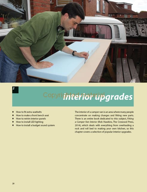Motoring journalist Rob Hawkins bought a VW Bay Window in 2010 and quickly turned it into a camper van for his family, enabling them to visit countries including France, Belgium, Holland and Germany. The work he completed on his van has helped him write his first book, Fitting a Camper Van Interior (Crowood), and spurred him onto writing this second practical book on modifications.