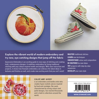 Expressive Embroidery is an exciting guide to new ways of stitching and creating bold, contemporary designs. It redefines embroidery by fusing traditional stitching with pop culture-inspired motifs and designs. With clear instruction and projects, it shows how freestyle embroidery can embrace the latest ideas in textures and finishes as well, and create new exciting work that you can’t resist!