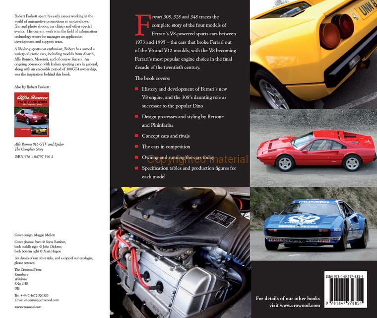 Robert Foskett spent his early career working in the world of automotive promotions at motor-shows, film and photo shoots. His current work is in the field of information technology where he manages an application development and support team. A life-long sports car enthusiast, Robert has owned a variety of exotic cars, including models from Abarth, Alfa Romeo, Maserati, and of course Ferrari. An ongoing obsession with Italian sporting cars in general, along with an enjoyable period of 308GT4 ownership, ws the inspiration behind this book.