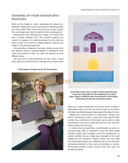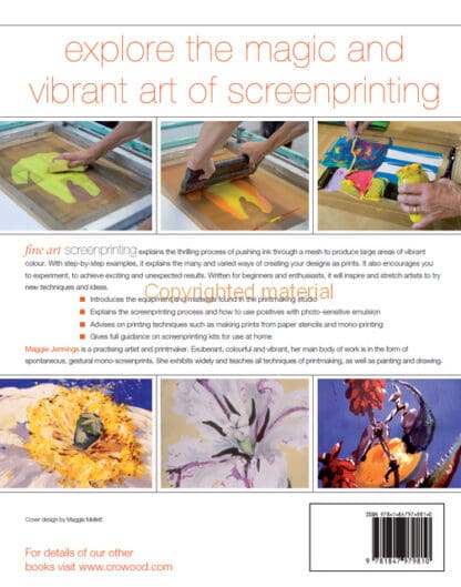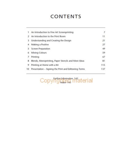 Fine Art Screenprinting explains the thrilling process of pushing ink through a mesh to produce large areas of vibrant colour. With step-by-step examples, it explains the many and varied ways of creating your designs as prints. It also encourages you to experiment, to achieve exciting and unexpected results. Written for beginners and enthusiasts, it will inspire and stretch artists to try new techniques and ideas. This new book covers the equipment and materials found in the printmaking studio and explains the screenprinting process and how to use positives with photo-sensitive emulsion. There is advice on printing techniques such as making prints from paper stencils and mono-printing and it also gives full guidance on screenprinting kits for use at home.