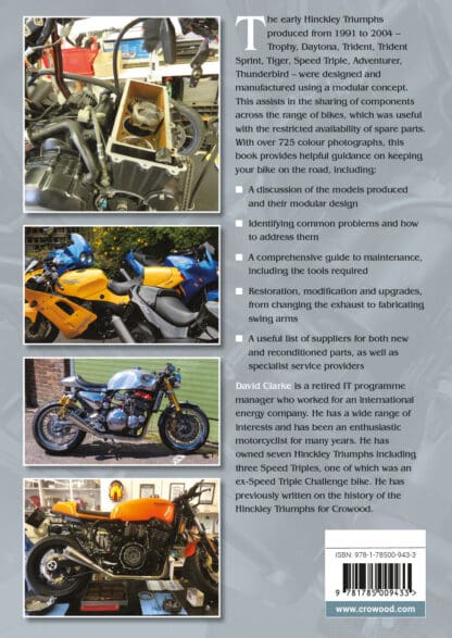 David Clarke is a retired IT programme manager who worked for an international energy company. He has a wide range of interests and has been an enthusiastic motorcyclist for many years. He has owned seven Hinckley Triumphs including 3 Speed Triples, one of which was an ex-Speed Triple Challenge bike. He has previously written on the history of the Hinckley Triumphs for Crowood.
