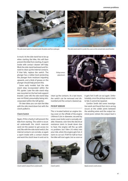 your bike on the road, including a discussion of the models produced and their modular design; identifying common problems and how to address them. There is a comprehensive guide to maintenance, including the tools required and details of restoration, modification and upgrades, from changing the exhaust to fabricating swing arms. There is a useful list of suppliers for both new and reconditioned parts, as well as specialist service providers.