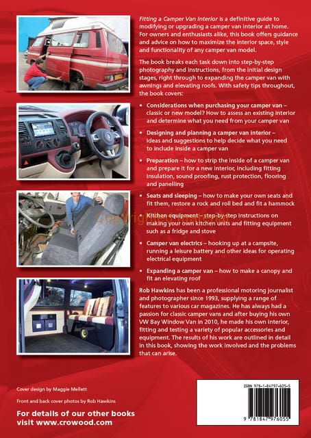 Rob Hawkins has been a professional motoring journalist and photographer since 1993, supplying a range of features to various car magazines. He has always had a passion for classic camper vans and after buying his own VW Bay Window Van in 2010, he made his own interior, fitting and testing a variety of popular accessories and equipment. The results of his work are outlined in detail in this book, showing the work involved and the problems that can arise.