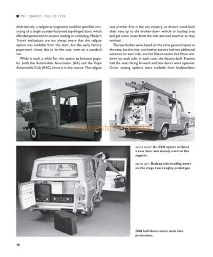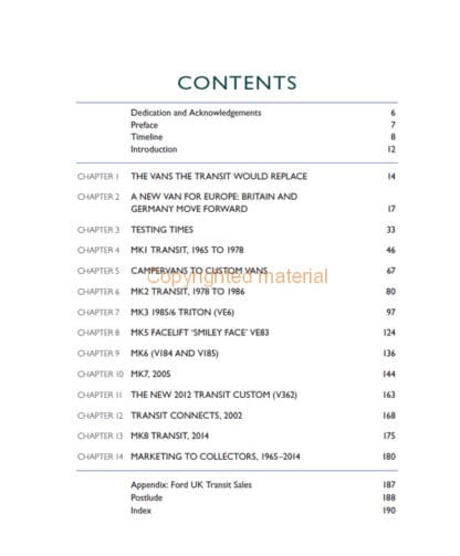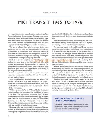 A commemorative history of fifty years of the iconic Ford Transit van, from the launch of the first-generation Transit in 1965, right up to the present day. Covering the full range of Transit models and with over three hundred photographs (including previously unpublished pictures from Ford’s picture archive), Ford Transit – Fifty Years is an ideal resource for anyone with an interest in this world-beating commercial vehicle. Written by acknowledged Ford Transit expert Peter Lee, the book covers the development era – light commercial vehicles in the 1950s, the ‘Project Redcap’ prototypes and the first Transit. Production and development of all eight generations and variants of Transits are also covered, including custom vans, camper vans, minibuses and special vehicle options. Specification guides, awards, sales figures are all included as well as marketing worldwide. Finally, there are interviews with designers, engineers and Ford employees, along with owners’ experiences. The Transit has and continues to receive numerous awards, voted ‘International Van of the Year’ in 2001 and 2013. With the 2014 launch of the all-new two-tonne Transit and its pioneering technology, this looks to be only the first fifty years of the Ford Transit story.